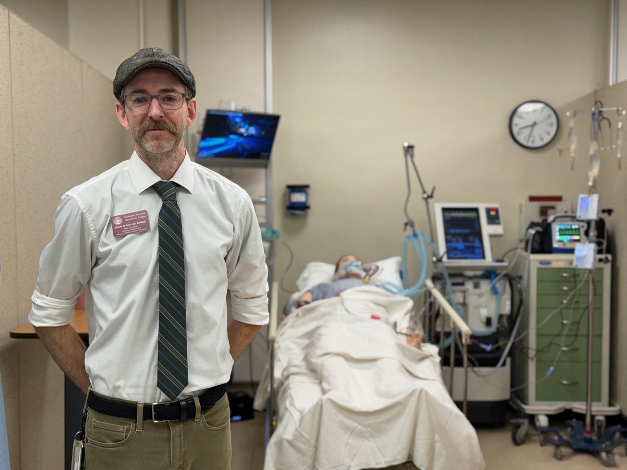 Daniel O'Neill stands in the SIMS Medical Center at STCC.