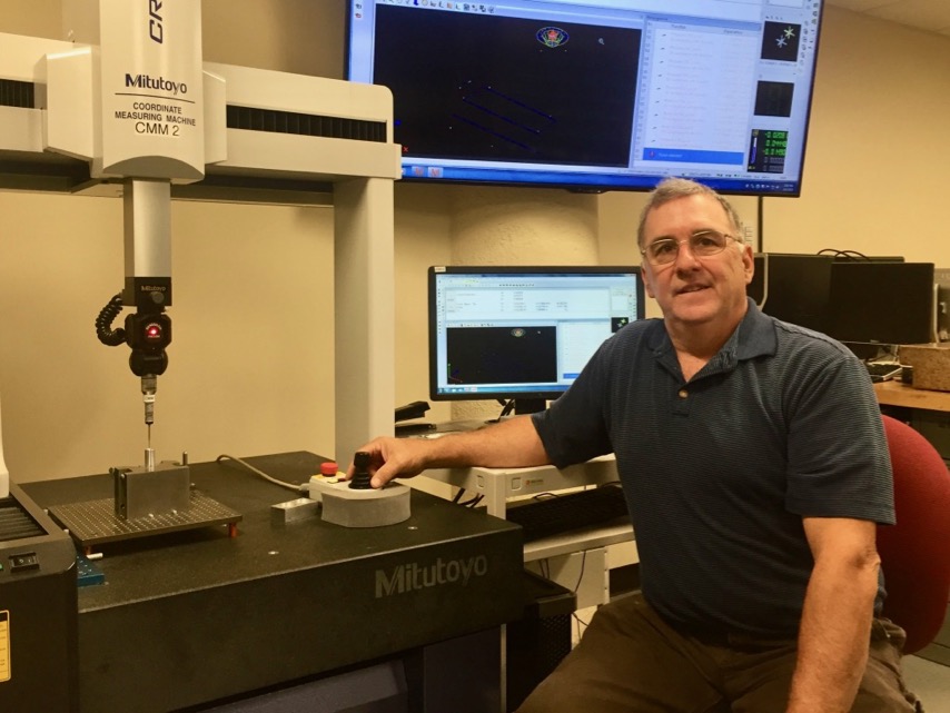 John LaFrancis, chair, mechanical engineering technology, uses a coordinate measuring machine (CMM) at STCC.