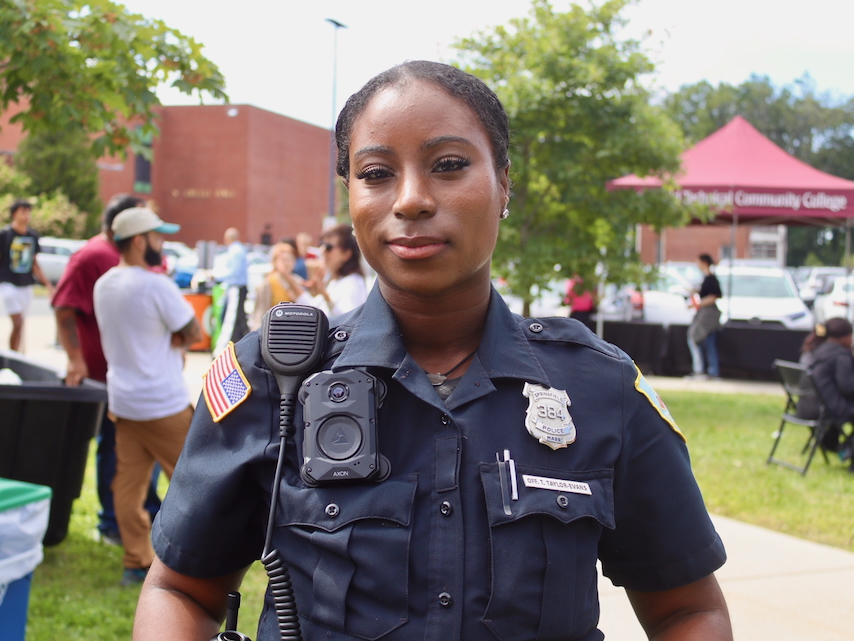 SPRINGFIELD, Mass. – When Officer Tequila M. Taylor-Evans walks her beat in downtown Springfield as part of the Police Department’s walking patrols, she brings more than a badge and uniform. She brings her lived experience, her determination as a mother of three and her perspective as a student in Springfield Technical Community College’s Criminal Justice program.